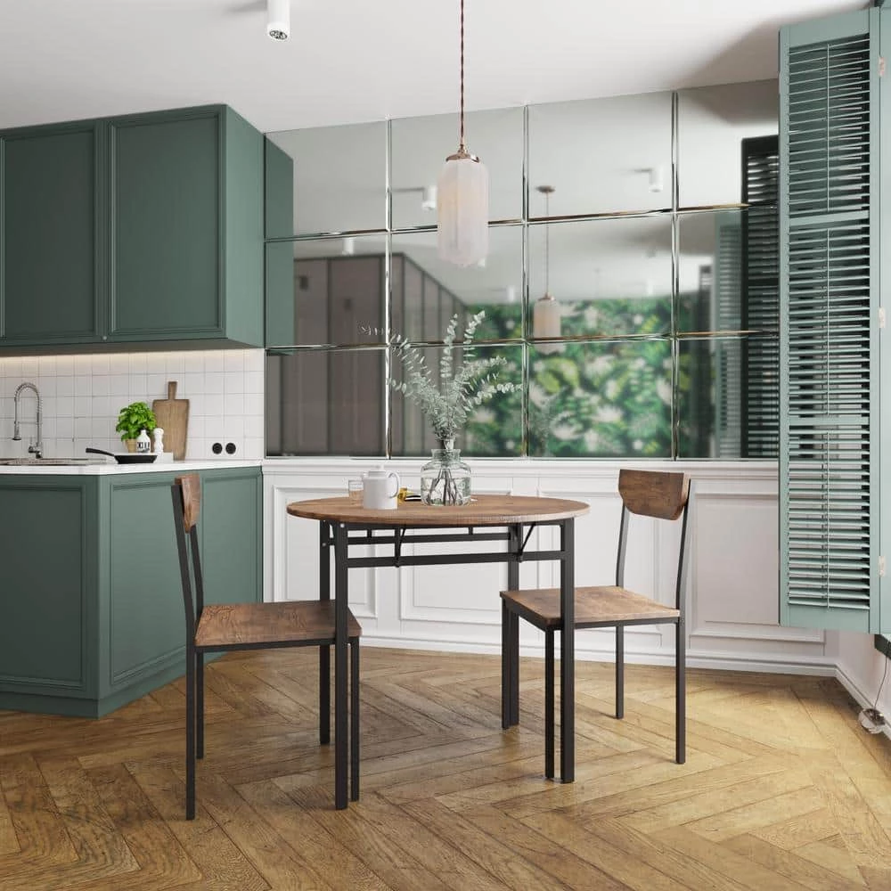 - The 3-piece MDF dining set includes 1 round dining table with drop leaf and 2 chairs which is extremely easy to install with detailed instructions