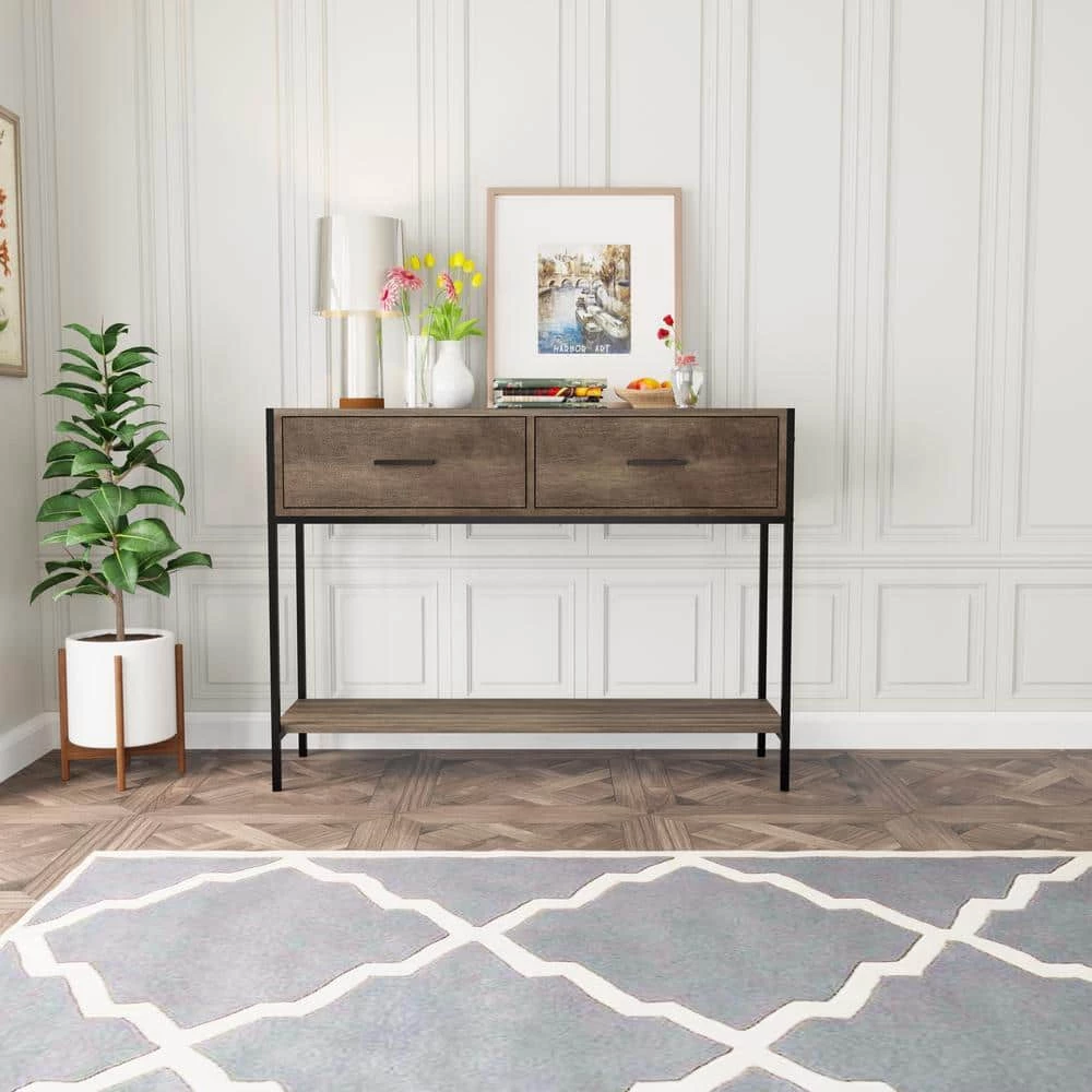 - The entrance table is equipped with 2 drawers and open shelves, which can provide ample storage space for your daily use.