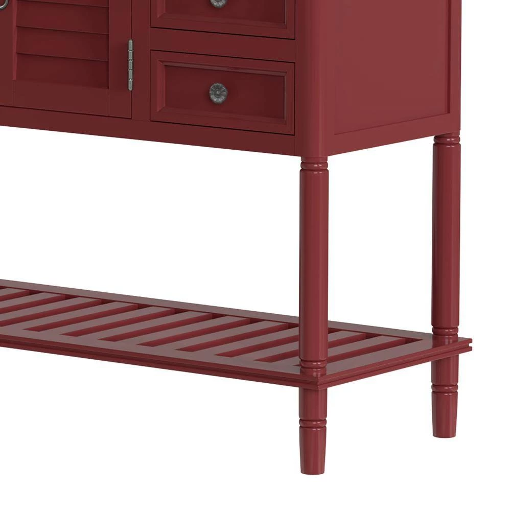 Effortlessly fill in that blank space in your home with this console table, designed to fit all of your needs and more. Crafted with a classic vintage appearance, this table comes complete with two front facing cabinet doors that open to reveal a spacious interior, perfect for stowing away your larger necessities and keeping them out of sight. The drawers minimize clutter, offering plenty of space to hold smaller items such as keys or mails while the spacious bottom shelf is the perfect place for storage baskets, shoes and more. Crafted with thick Pine and MDF wood slabs and accented with quality iron handles, this piece is manufactured for quality and exudes a high-end appeal that will leave your guests talking.