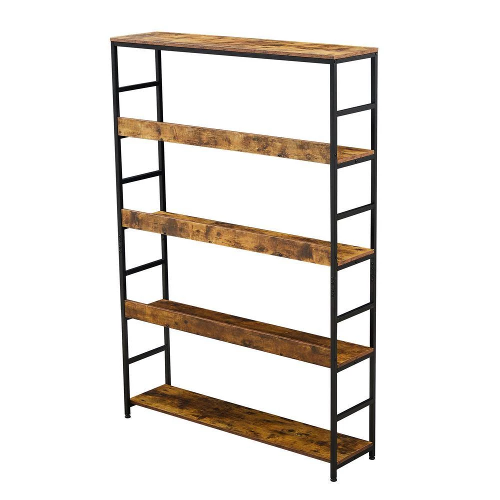 The open design of this bookcase combines the charm of both minimalist and vintage furniture styles which provides plenty of space to display and storage your books, decorations, plants, and other daily accessories.High quality density board and powder sprayed steel frame structure, stability is guaranteed. In addition, adjustable cushions keep the table stable on uneven ground. This clean open bookcase can be used as a bookcase to store your favorite books and collectibles, or as a funky shelf in the living room to display your family photos and potted plants.