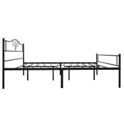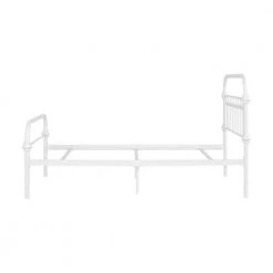 - Platform metal bed with no need for box spring provides valuable under-bed storage. Stylish appearance with vintage headboard and footboard