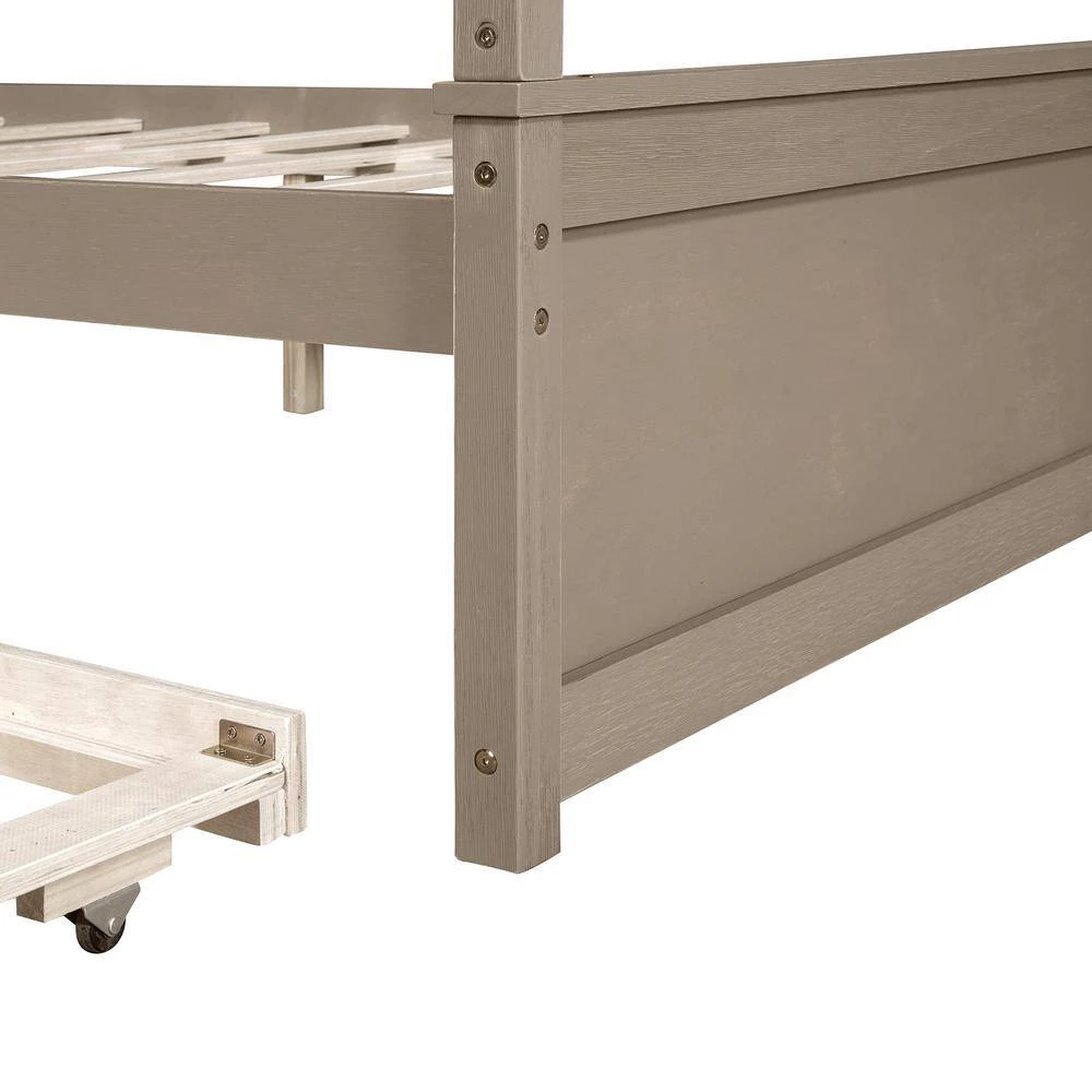 - Modern Design:Wooden canopy bed with brushed-effect finish has a sleek exterior profile, built-in headboard and footboard, with clean lines for a timeless look