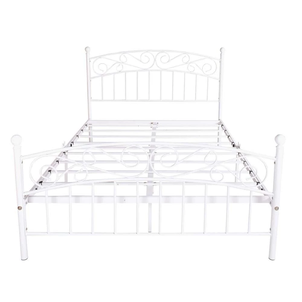 - Platform metal bed with no need for box spring provides valuable under-bed storage. Stylish appearance with vintage headboard and footboard