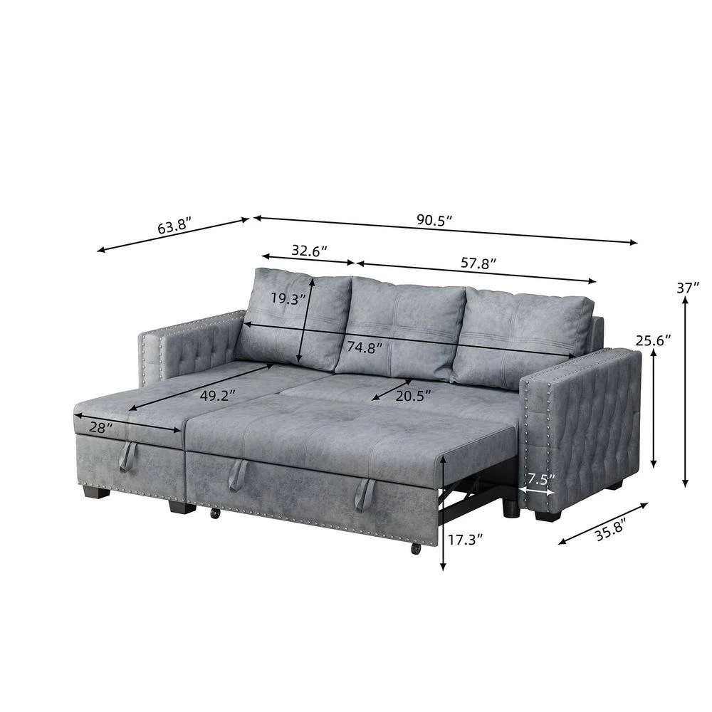 This sofa easily converts to a pull-out sleeper, offer extra space for overnight guests. When not sleep need, you can use it as a sectional sofa, the chaise features hidden storage.It also can be configured as right or left side placement based on the needs of your space, classic L shape sectional sofa is a great charming to your living room.