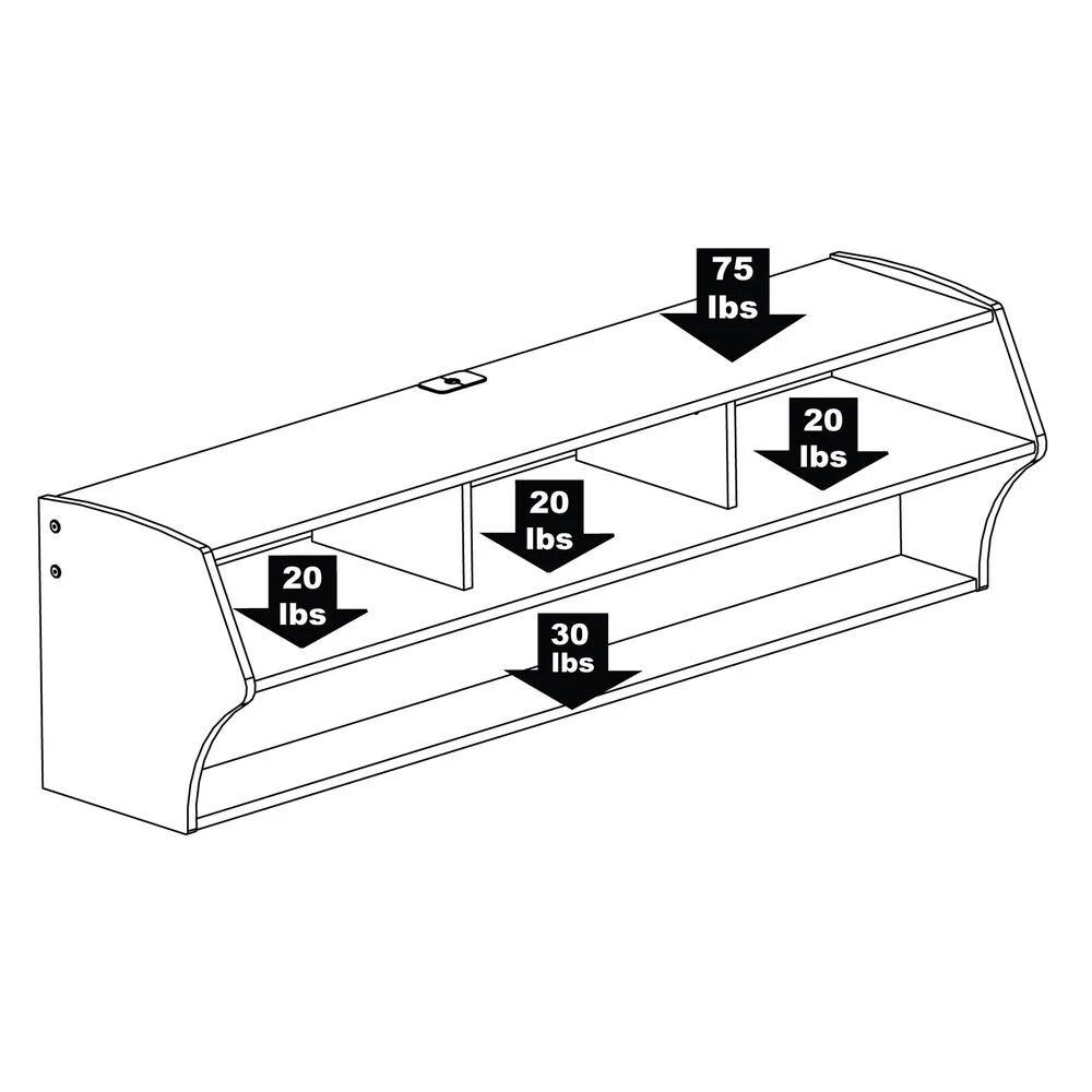 - Internal dimensions: 18.5 in. W x 6 in. H x 15.5 in. D (upper compartments) 57 in. W x 8 in. H x 5.75 in. D (lower shelf)