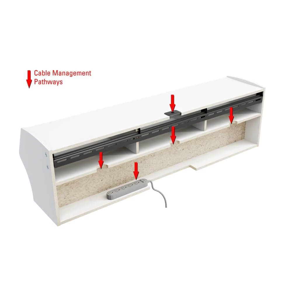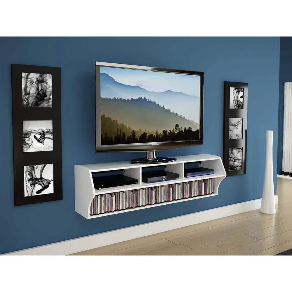 The minimalist, off-the floor design of the Altus Plus eliminates the need for a separate wall-mount TV bracket and is the perfect pairing for any flat screen TV up to 60 in. At 58 in. wide, it boasts 3 compartments for Audio/Video components and a bottom shelf for media with room for 137 Blu-Ray Discs or 93 DVDs. Cables and power bars can be neatly concealed to maintain a clean, modern look. When installed according to the manufacturer’s directions, the Altus Plus has a 165 lb. weight capacity which will accommodate most flat screen TVs and Audio/Video components. Installing the Altus Plus at any height is simple, thanks to its innovative Patent Pending metal hanging rail and mounting system. Available in deep black, drifted gray, pure white and rich espresso laminate finishes. Ships Ready to Assemble with an instruction booklet for easy assembly and links to an installation video. “The Original Wall System in. Includes a 5-year manufacturer’s limited warranty.