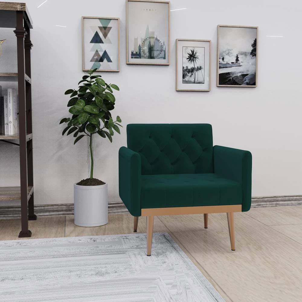 Tapered legs and velvet fabric upholstery of this seating collection create a stylish look that embraces vintage flair and modern living. Comfortable and thick cushion to eliminate your fatigue. A variety of colors for your choice.
