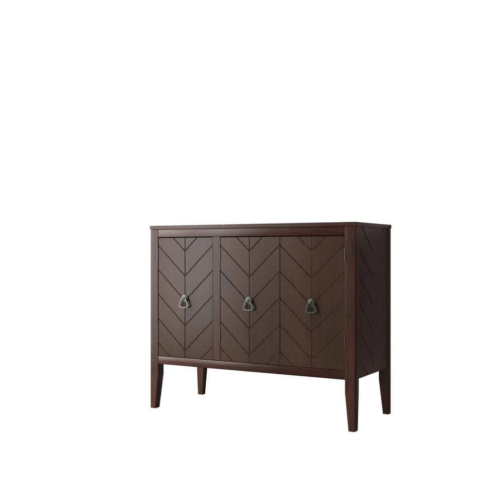 - Made of high grade MDF with wood veneer for top and pine wood for frame and legs, the cabinet is highly durable with heightened stability. Three doors with antique bronze pull handle, make it easy to open and close the door.