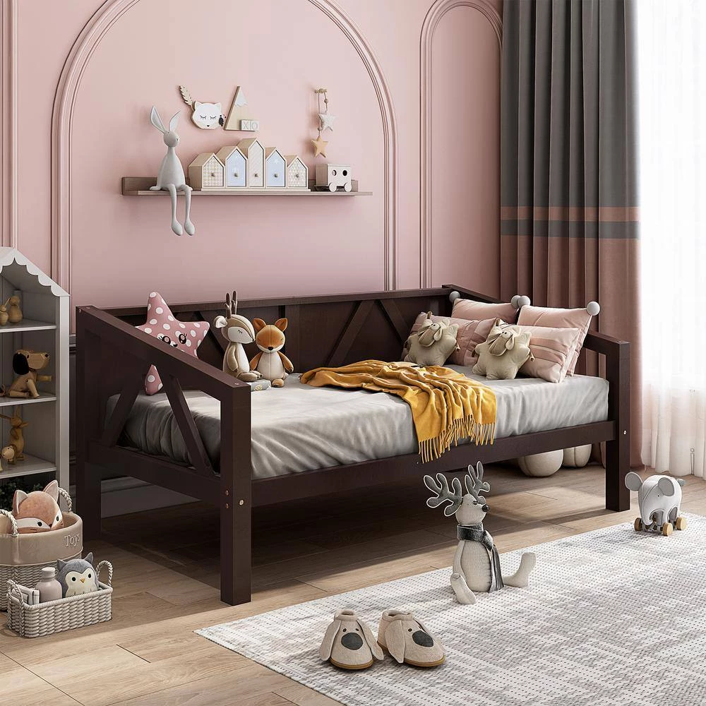 Our dual-use daybed frame can be used as sofa or bed. It is a good choice for you. High-quality, solid pine legs and a strong, durable frame ensures stability and durability for long-term use. Slat kit included so box springs are not required.