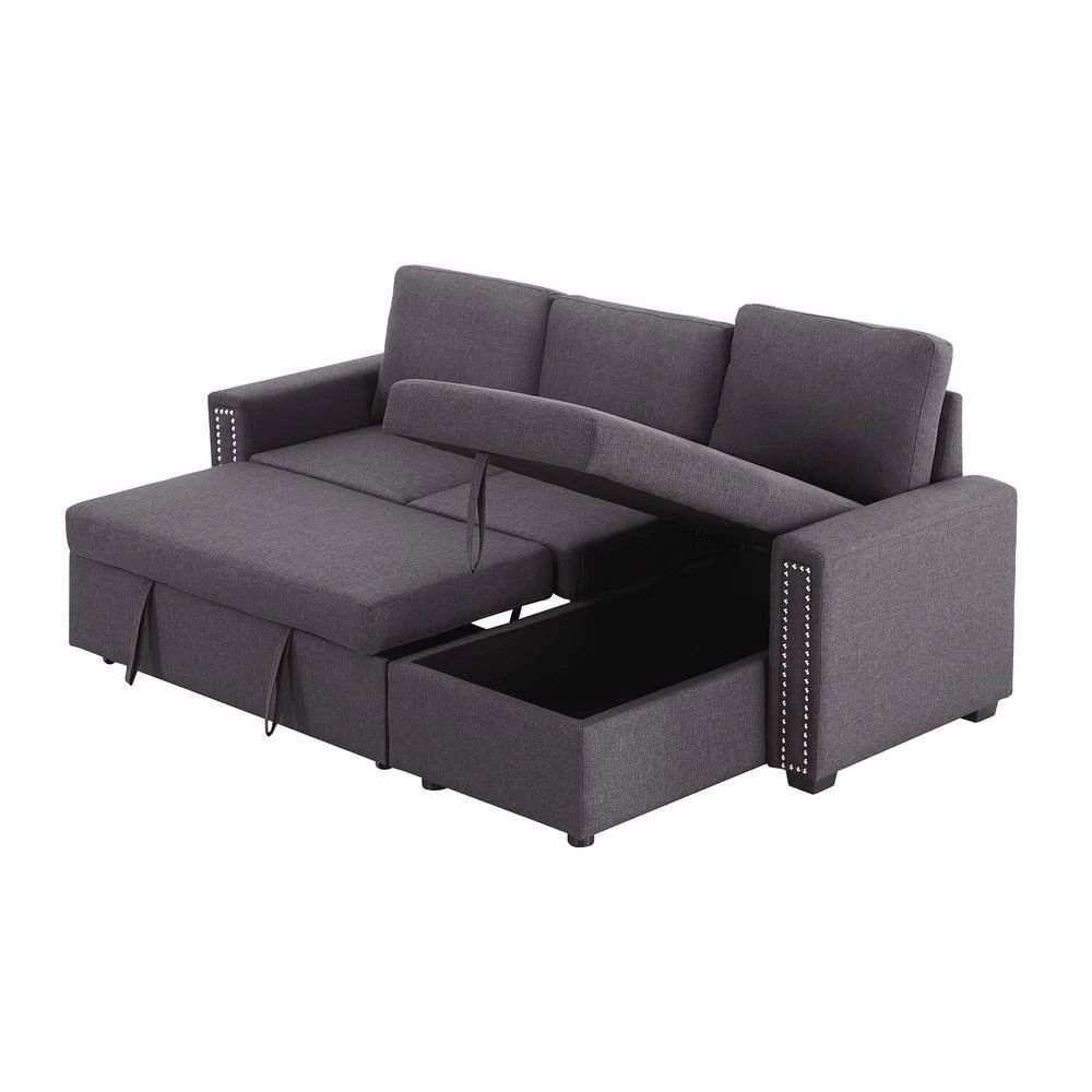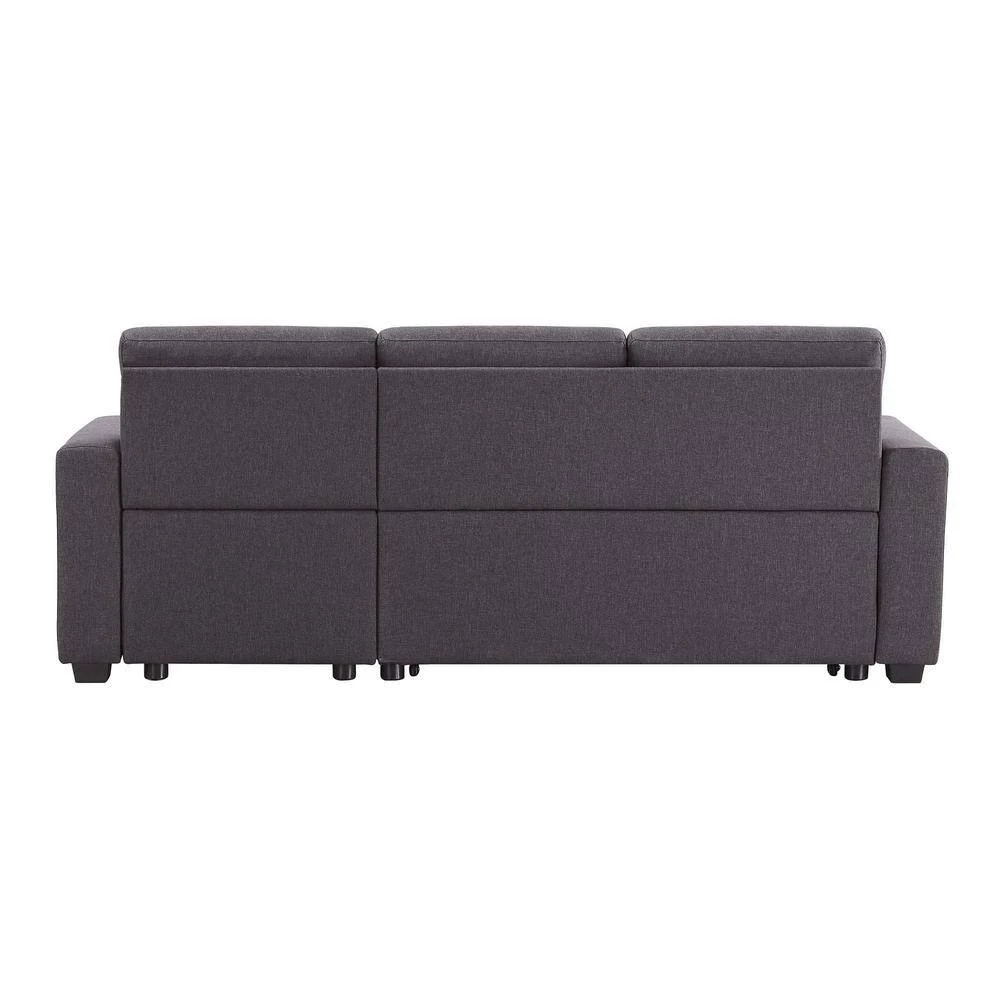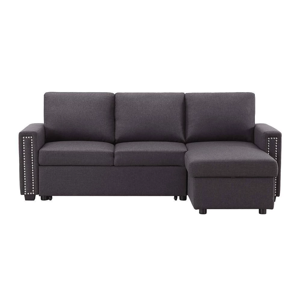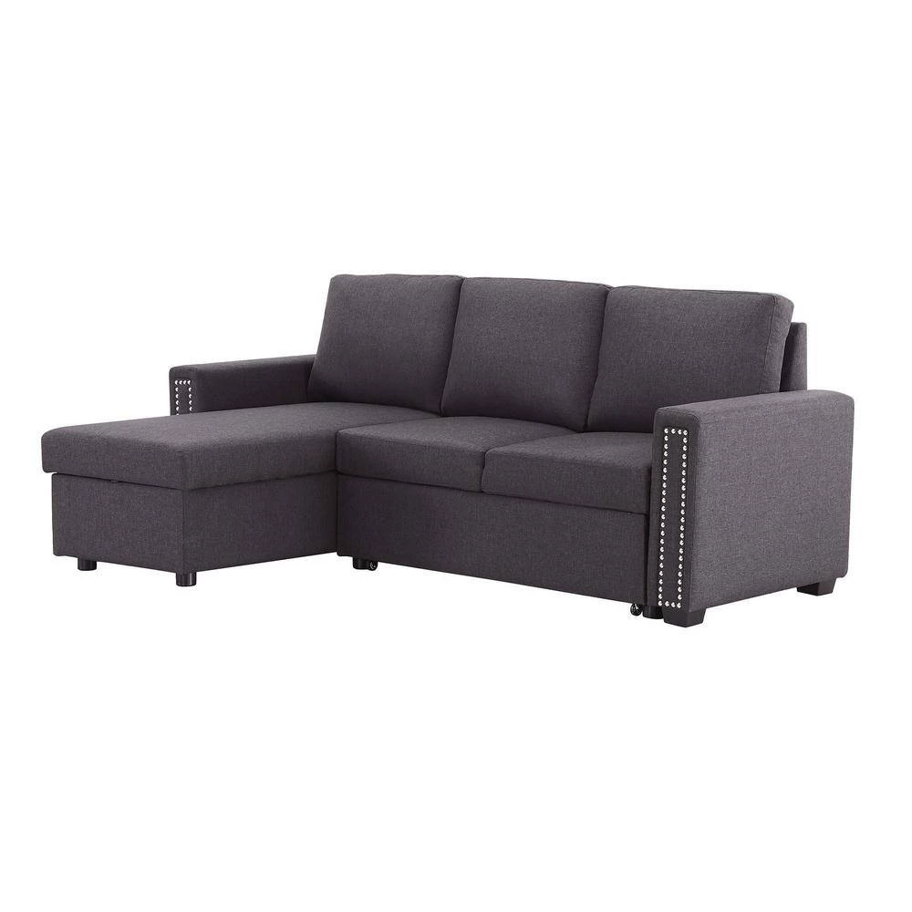 This set includes a 2 seat sofa, a storage chaise lounge. The chaise of the couch can be either right or left side. The tail of the sofa bed is pulled out in a drawer type, the equipped portable handle with the assistance of the bottom pulley device to quickly complete the bed transformation. Upholstered contemporary sofa design made of soft fabrics.