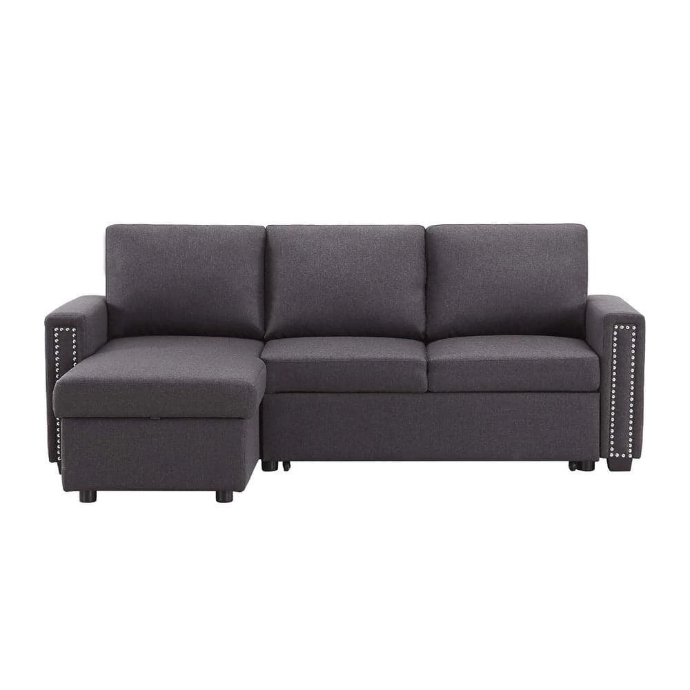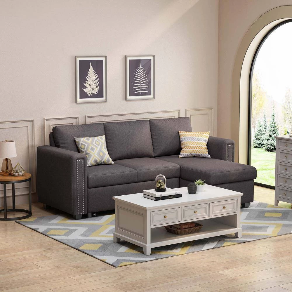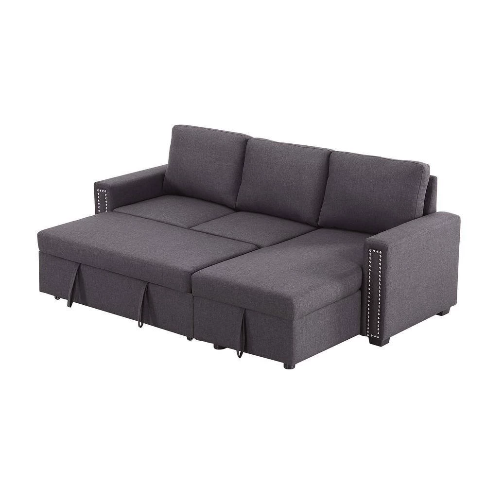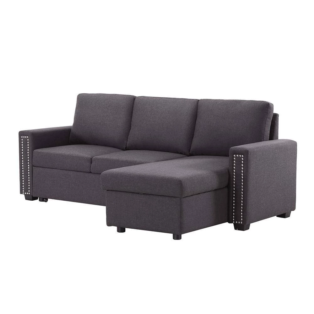 This set includes a 2 seat sofa, a storage chaise lounge. The chaise of the couch can be either right or left side. The tail of the sofa bed is pulled out in a drawer type, the equipped portable handle with the assistance of the bottom pulley device to quickly complete the bed transformation. Upholstered contemporary sofa design made of soft fabrics.