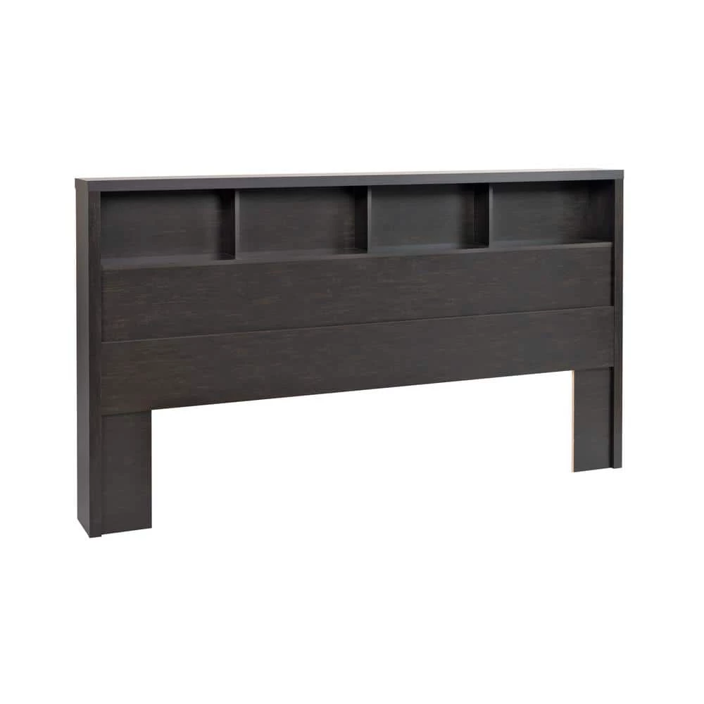 The District bedroom collection is inspired by the simplicity of urban design; the District Headboard features a bold thick top and functional storage. Its Washed Black laminate fuses together classic black with warm brown undertones to create a high-end look. This free-standing headboard works well with a variety of king size bed frames and decorating styles.