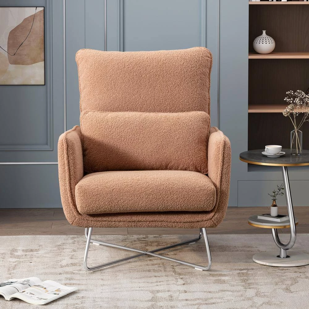 This armchair is made of high-density and high-resilient foam. It can provide maximum comfort for you. Teddy short plush particle velvet is soft to the touch, resistant to stains and discoloration, give you comfortable sitting.