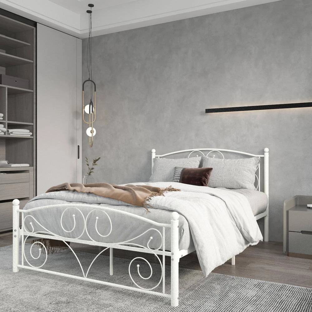 Full Size Unique Flower Sturdy System Metal Bed Frame with Headboard and Footboard by ZIRUWU -ZIRUWU || Prepac Shop white ziruwu platform beds zqp bf20b 31 1000