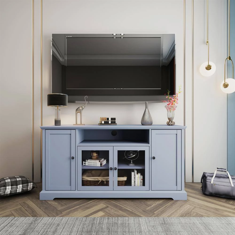 - Functioning as a TV stand and entertainment center, this media console can accommodate most flat panel TVs up to 65 inches and have three cable managements feature in the back for a tidy appearance.