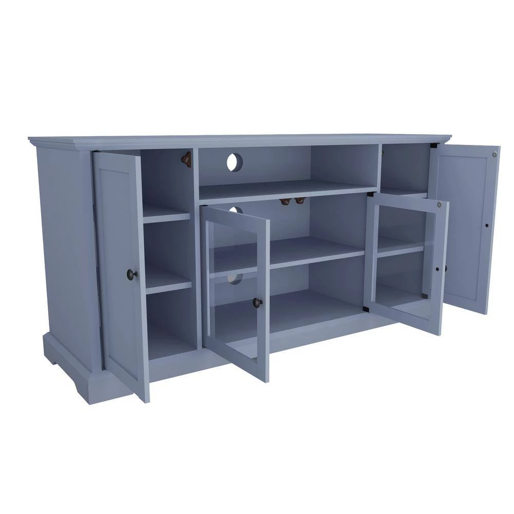 - Side cabinets feature adjustable shelving so you can easily fit your items inside, with tempered glass doors for a stylish look.