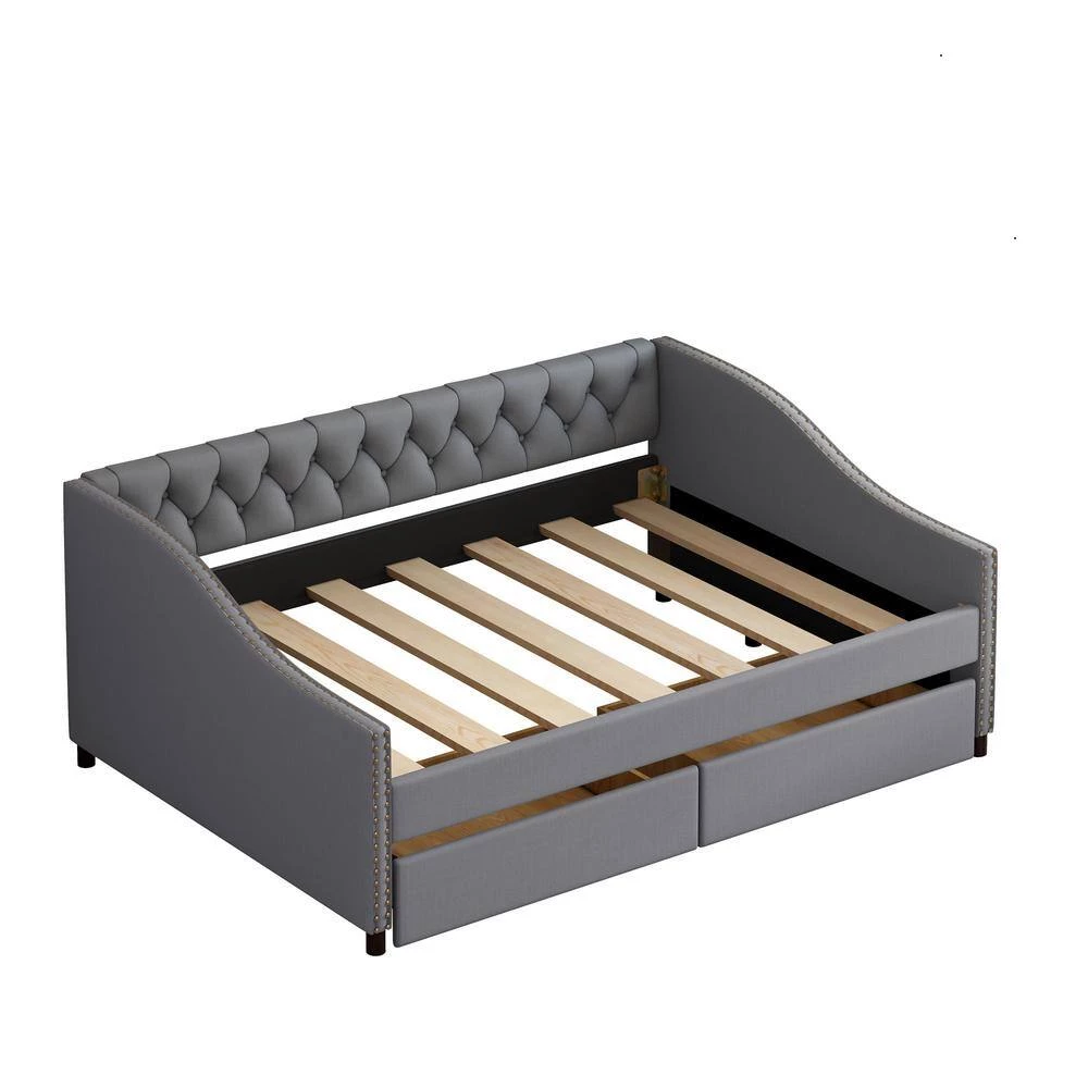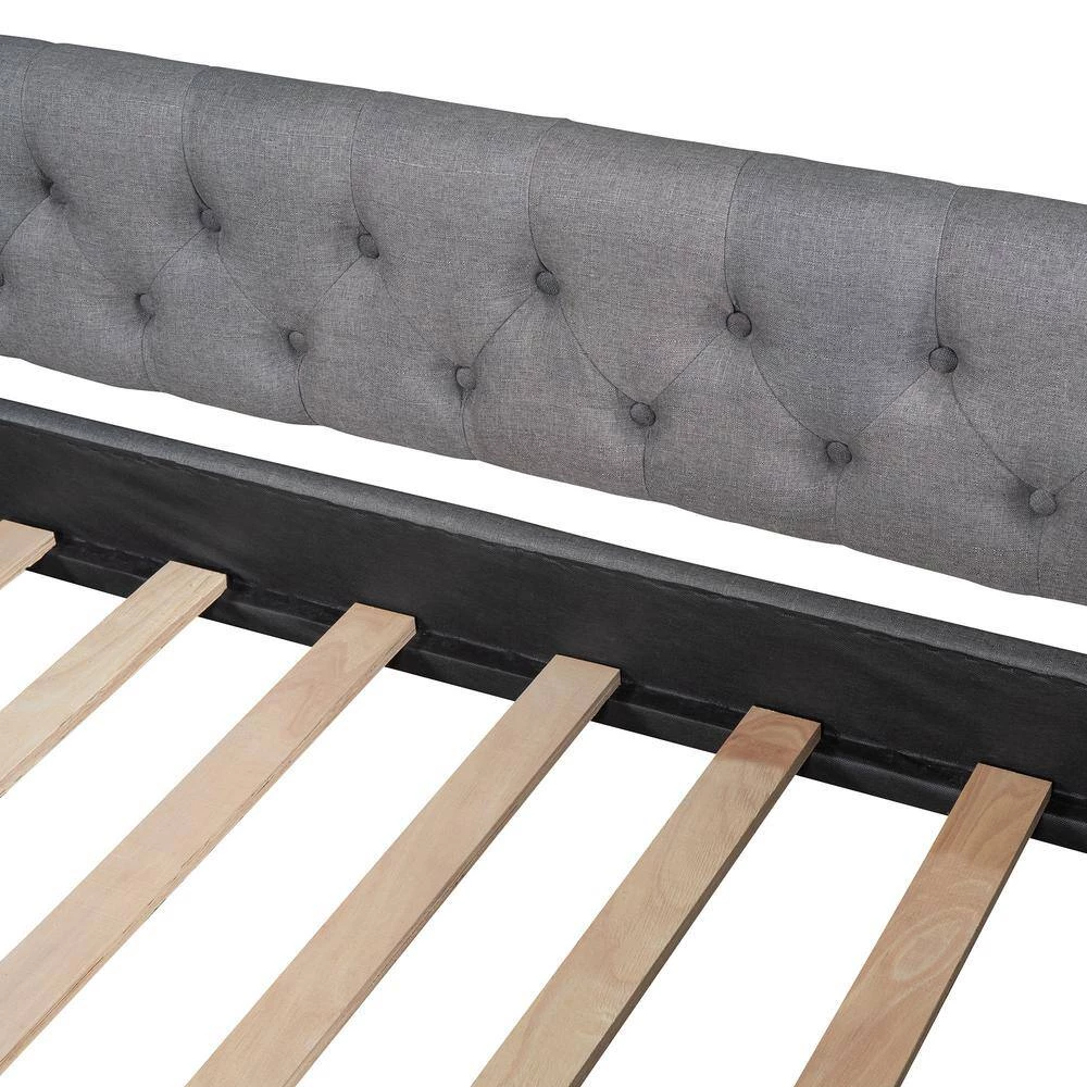 - Elegant style Upholstered in carefully-selected linen fabric, in elegant gray, feature a diamond-tufted backrest and two armrests with rivets, this daybed not only suits any home decor, but is timeless in its design.
