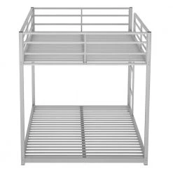 Silver Twin Over Twin Metal Bunk Bed with shelf and Slatted Support No Box Spring Needed by ZIRUWU