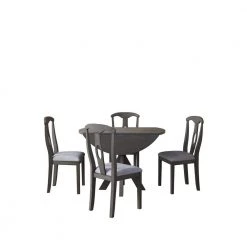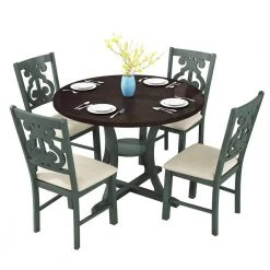 Antique Blue 5-Piec Round Dining Table and 4 Fabric Chairs with Special-shaped Table Legs by ZIRUWU
