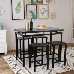 Espresso 5 Piece Dining Set with Counter and Pub Height, Pine Dining Table with 4 Chairs by ZIRUWU