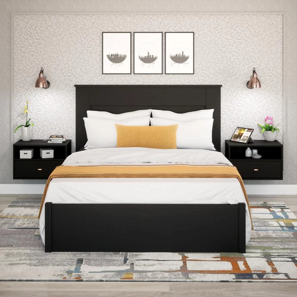 This elegant Milo Floating Nightstand is the ideal companion for your modern bedroom. With both a drawer and an open compartment, it holds all your typical bedside essentials like books, magazines and glasses. For your electronic devices, both the top surface and the compartment have openings to manage cords. The hanging design gives you the flexibility to place it at any height and saves valuable floor space. Prepac’s innovative mounting rail makes it easy to put up – you just have to find the wall studs.