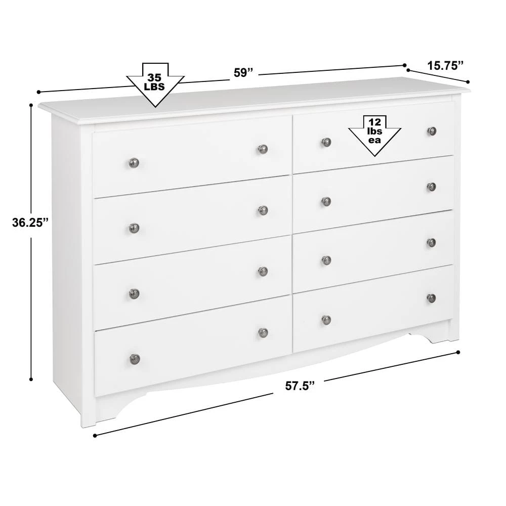 The always-in-style Monterey Collection has an everlasting appeal. Now there is an 8-drawer dresser available. As a shared item for partners in the master bedroom or a way to organize a teenager’s fashion addiction, it’s a great addition for any bedroom. Keep a separate drawer for t-shirts, shorts, jeans, sweaters, socks, underwear and still have two more. Or put it in a spare bedroom to keep extra linens – or more clothes. There is enough space on the 59 inch wide top for a lamp, a few books and some collectibles. Coordinate with other furniture pieces in the Monterey Collection.
