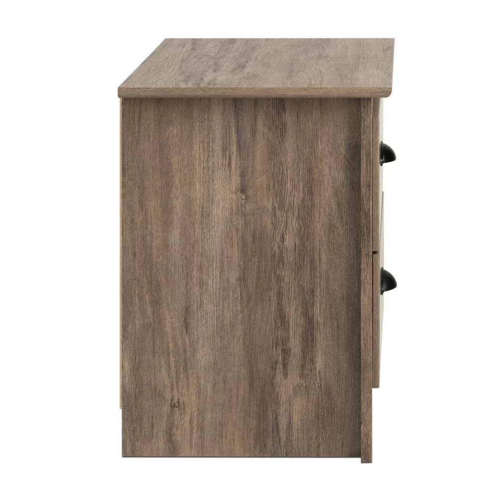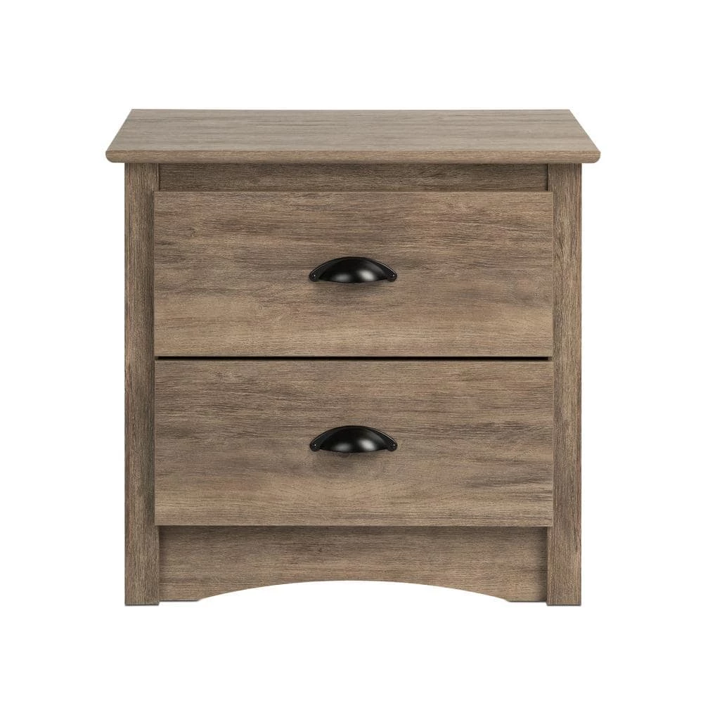Can your bedroom furniture be both elegant and functional, This space-saving bedside table makes it possible with 2-full-sized drawers, each perfect for keeping the knick-knacks of your life out of sight. Use the sturdy top to pile on your books, cell phone, alarm clock, lamp and whatever else you like: this night table will look posh no matter what its storing. The drifted gray laminate finish adds a hint of warm coastal style and the black metal hooded handles add a vintage touch.