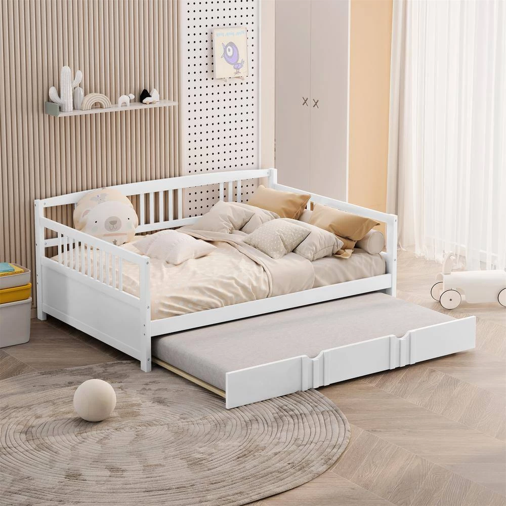 - This full size daybed with a twin hideaway trundle bed is easy to create the extra sleep space when needed. Ideal for accommodating guests or for the family with several kids.